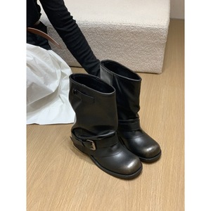 复古棕色马丁靴女鞋2025新款春秋单靴粗跟显瘦配裙子裤管靴短靴子
