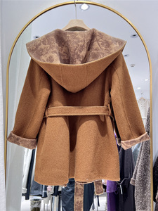 连帽双面羊绒大衣女25秋冬新款韩系小个子高端气质宽松羊毛呢外套