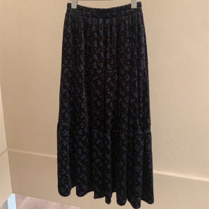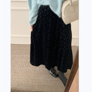 丝绒秋款2025年韩系百搭显瘦新款碎花半身裙