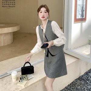 实拍主推现货-年秋季新款气质时尚显瘦马甲衬衣三件套