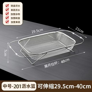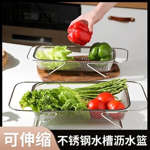 不锈钢伸缩沥水篮放碗家用洗菜筐果蔬水果盆滤水篮厨房水槽沥水架