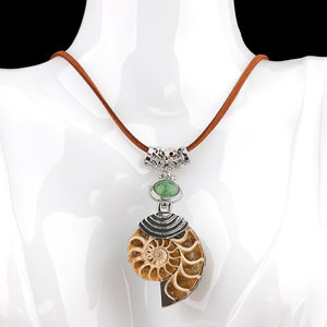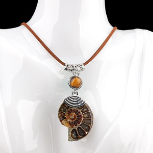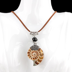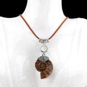 欧美时尚创意天然螺化石合金镶嵌水晶包珠吊坠斑彩螺项链饰品