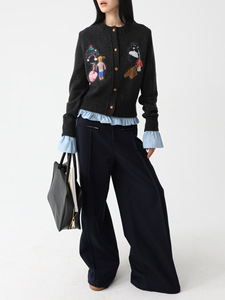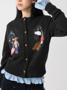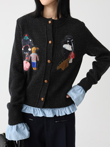 SUPERSCAPE素舶 复古圆领拼贴装饰羊毛针织开衫