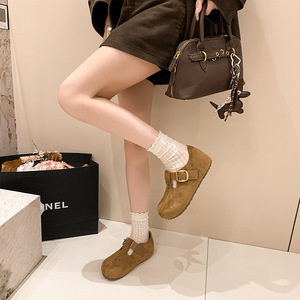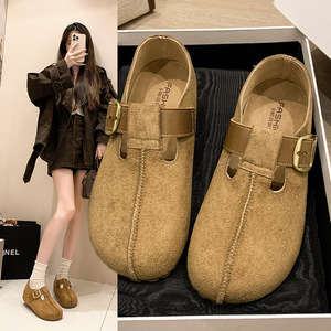 2025新款复古勃肯鞋女平底休闲内增高女透气百搭小懒人包头单鞋女