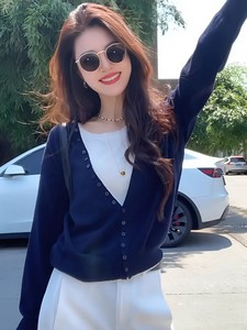 假两件慵懒风圆领长袖针织衫女2025新款早秋宽松显瘦时髦洋气上衣