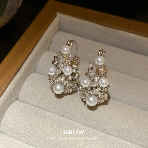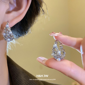 镶钻珍珠镂空花篮时尚耳扣个性设计感耳环轻奢高级感气质耳饰批发