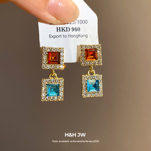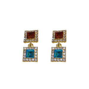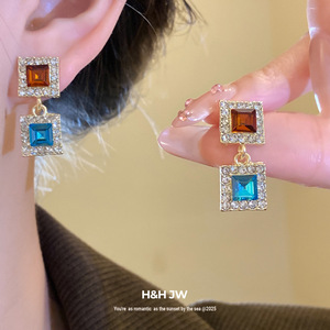 银针镶钻方形吊坠时尚耳环复古宫廷风气质耳钉轻奢高级感耳饰批发