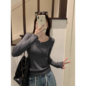 早秋2025新款气质圆领毛衣打底衫女内搭高级感韩系穿搭针织衫上衣