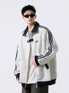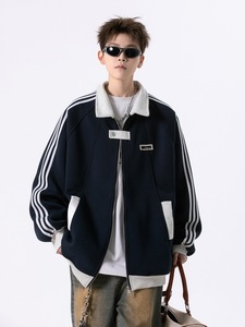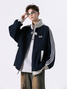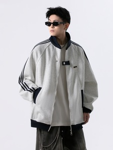 美式三条杠棒球服男女秋冬季重磅潮牌条纹运动夹克青少年拼接外套