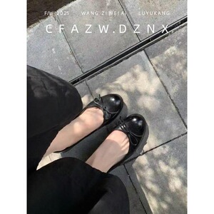 超软牛皮~法式真皮复古蝴蝶结单鞋女秋新款平底浅口芭蕾玛丽珍鞋