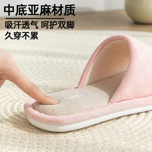 2025亚麻拖鞋女款家居室内软底简约舒适透气吸汗四季拖鞋情侣批发