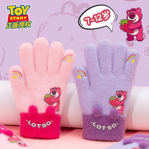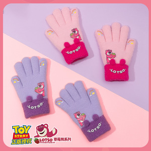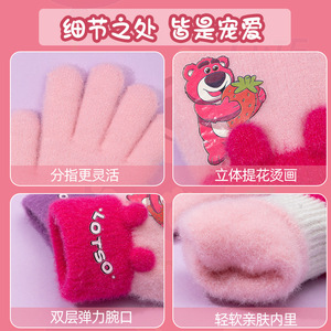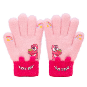 儿童冬季手套保暖加厚防寒五指骑行小学生写字可爱草莓熊针织手套