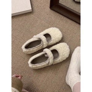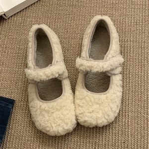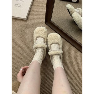 毛毛鞋女冬外穿新款韩版仙女风加绒保暖棉鞋平底玛丽珍豆豆鞋