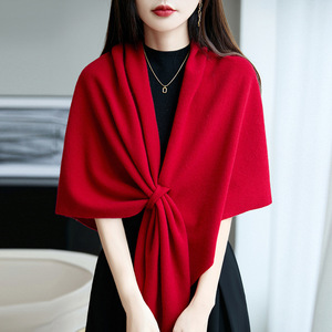 高级感三角披肩斗篷女软糯针织外搭护肩保暖披风纯色羊毛三角围巾