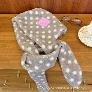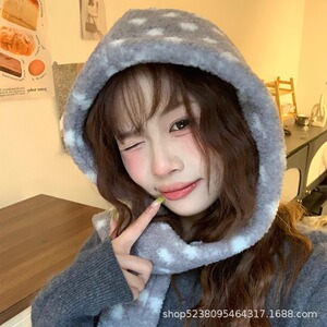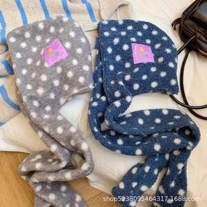 小众设计感波点帽子围巾一体式时髦百搭显脸小秋冬季氛围感装饰