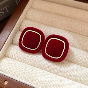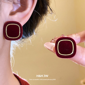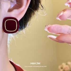 银针植绒方形简约时尚耳环复古vintage气质耳钉轻奢高级感耳饰女