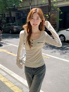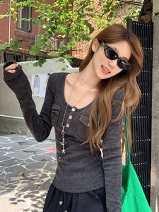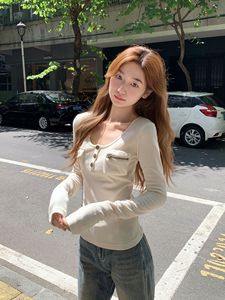 纯欲辣妹风拼接口袋长袖t恤女2025秋季新款修身显瘦内搭绝美上衣