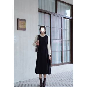 大码女装2025假两件早秋连衣裙女韩版简约赫本风收腰显瘦小黑裙潮