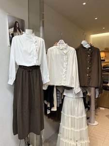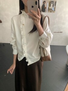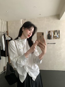 MSTUDIO漫莎 韩系温柔甜美风设计感斜扣花边领克长袖衬衫女6011