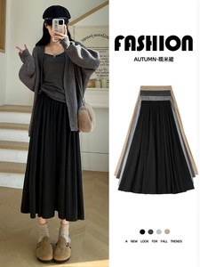 黑色糯米裙半身裙女长款2025新款秋冬季a字裙显瘦小个子加绒长裙