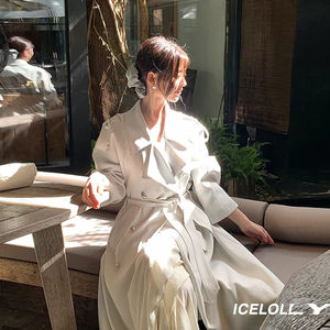 潮流设计中长款英伦风衣女潮感西装外套翻领春秋休闲小个子