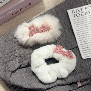 超闪水钻字母发夹粉色毛绒BB夹甜美可爱侧边夹碎发顶夹刘海夹发饰
