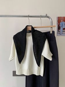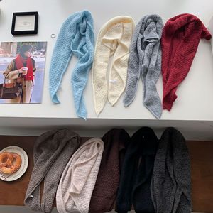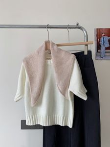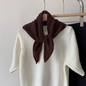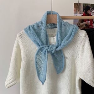 新款纯色针织镂空三角巾围巾秋冬韩版百搭保暖护颈装饰小领巾披肩