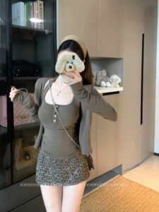 小个子辣妹时尚套装女秋季2025新款挂脖吊带背心长袖开衫两件套潮