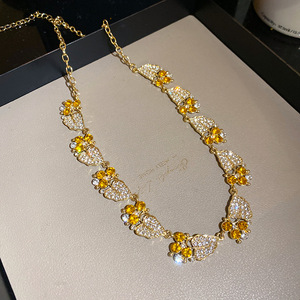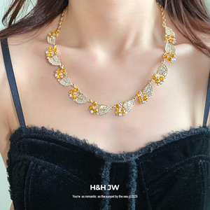 复古锆石树叶吊坠项链欧美ins时尚轻奢气质锁骨链小众高级感项饰