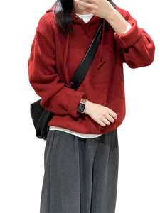 红色连帽毛衣女秋冬季2025新款韩系慵懒可外穿内搭打底针织衫上衣