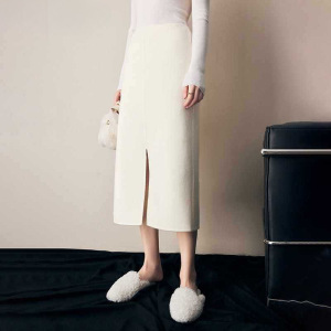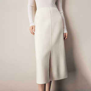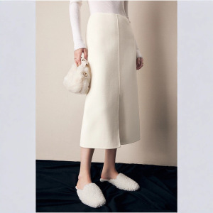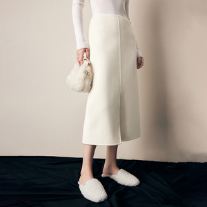 白色双面呢羊毛半身裙女装2025秋冬季新款毛呢半裙感开叉a字裙子