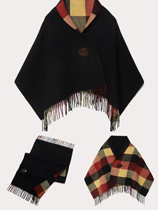 西太后羊毛格子斗篷羊羔毛双面披肩纯色围巾披肩级感保暖秋冬