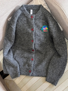 卡通刺绣标灰色高级感毛衣针织衫外套秋冬慵懒休闲情侣上衣线衣潮
