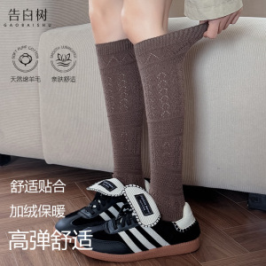 羊毛小腿袜女秋冬复古纯色镂空百搭堆堆袜JK女加绒保暖小腿袜子女