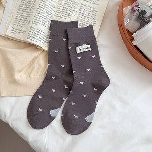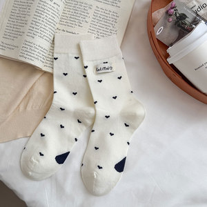 袜子女中筒袜ins潮秋冬无骨棉袜日系布标爱心学院风少女袜子批发