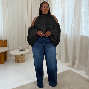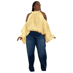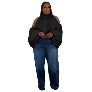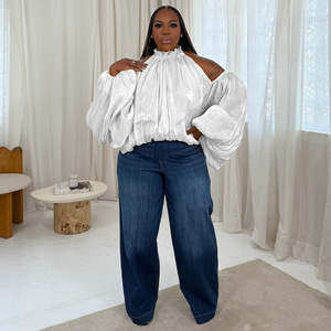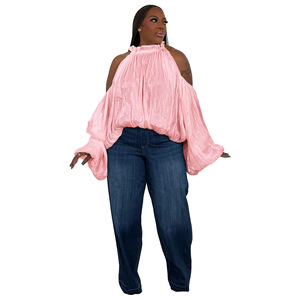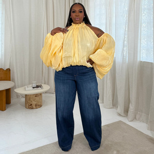N8147亚马逊秋季新款后背系带宽松雪纺衫露肩设计感灯笼袖上衣女
