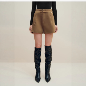 艾诺丝雅诗 59.1%绵羊毛双面呢A字短裤女2024冬季休闲裤31013091