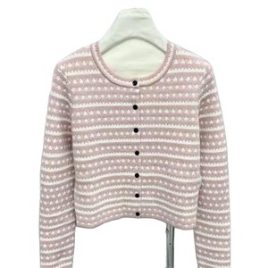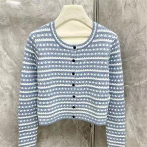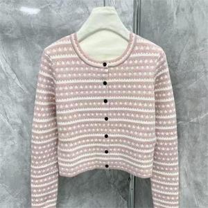 秋冬季短款高级感外搭显瘦毛衣外套小香风波浪花边条纹针织开衫女