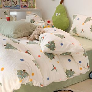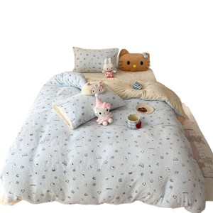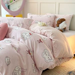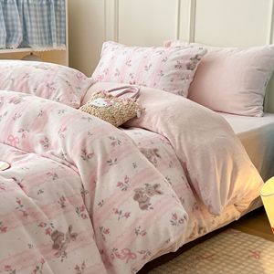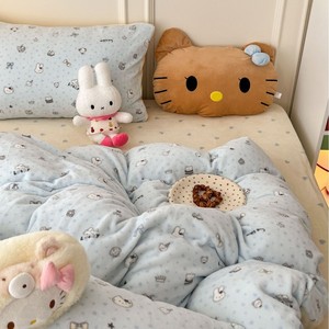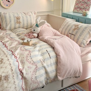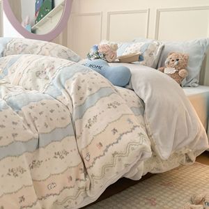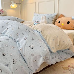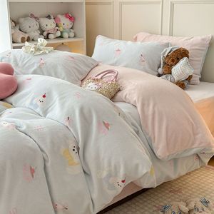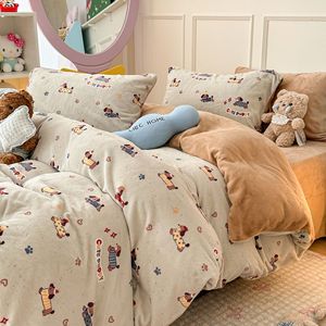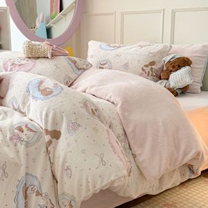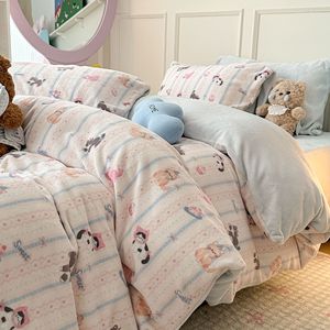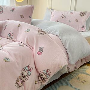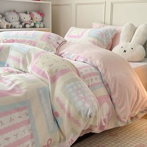 奶fufu萌趣小卡通牛奶绒四件套秋冬款双面保暖珊瑚绒被套床单床笠
