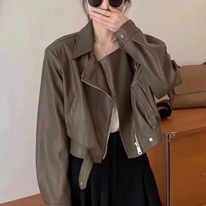 黑色pu皮衣外套女短2025秋季宽松小个子复古港风长袖机车夹克上衣