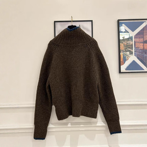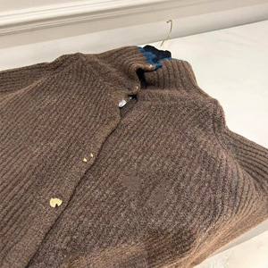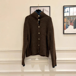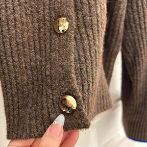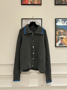 南油直供2025秋冬时髦撞色翻领羊绒针织开衫洋气胸前字母刺绣上衣