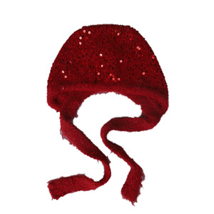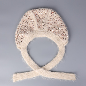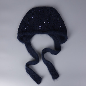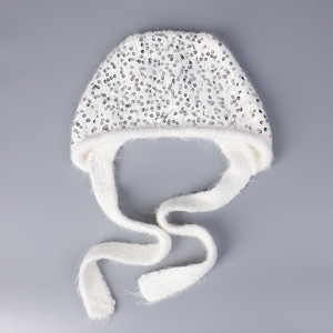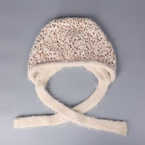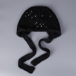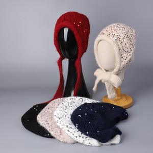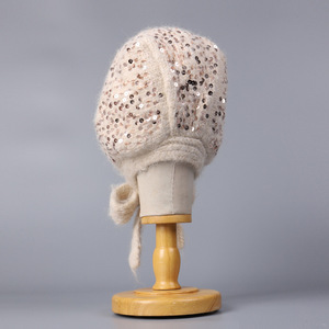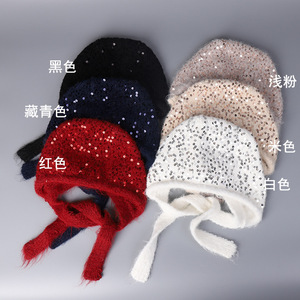 护耳针织帽女2025新款冬季系带亮片萝莉帽东北旅游帽子