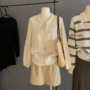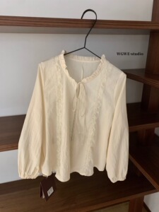 WGWE 7289广州十三行女装2025秋装新款小个子系带长袖小衫T恤上衣
