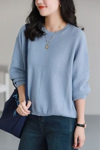 秋季新款 绵羊毛混纺针织衫女圆领休闲宽松显瘦菠萝针毛衣女 5808