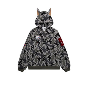 小众美式重磅勋章刺绣迷彩开衫连帽卫衣男女设计感高街新款外套潮
