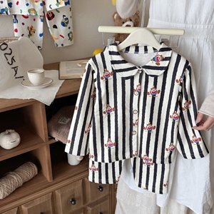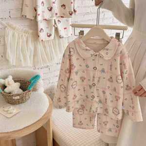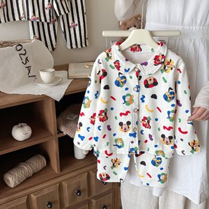 中大童家居服宝宝翻领开衫两件套儿童秋冬睡衣男女童卡通长袖套装