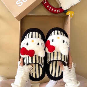 时尚卡通可爱小猫毛毛拖鞋女2025秋冬季新款厚底舒适保暖包头拖鞋