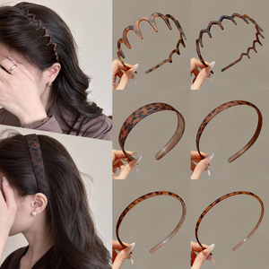 复古豹纹磨砂发箍女士2025新款高级感防滑高颅顶洗脸头箍发卡发饰