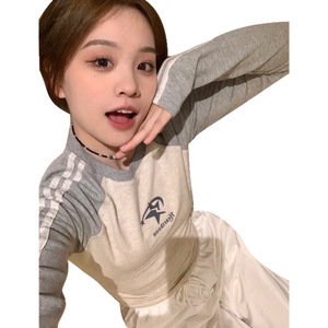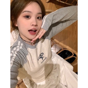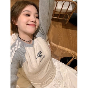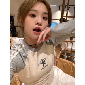 美式星星纯棉长袖t恤女内搭插肩修身打底衫秋冬辣妹紧身短款上衣