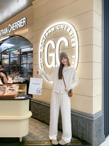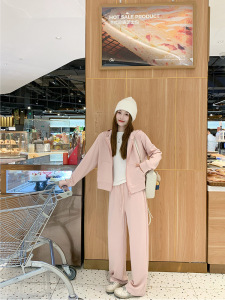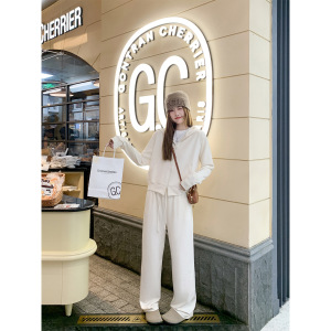 白色运动套装女2025秋季减龄正肩拉链卫衣休闲高腰宽松窄版阔腿裤